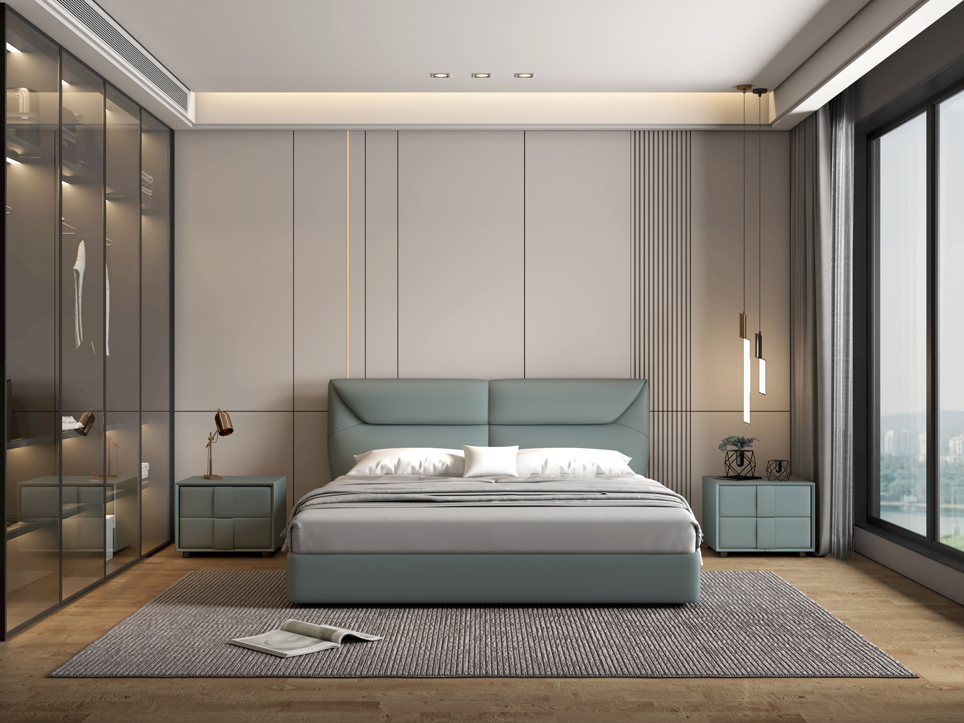 莫兰迪蓝的配色适合轻奢简约风格,浅色非常容易搭配。床屏靠包采用分段式设计,分区承托颈腰背部压力,床体没有棱角,不用担心磕碰受伤意外发生。人生,不光是工作和拼搏,也需要片刻的宁静与足够的休息。